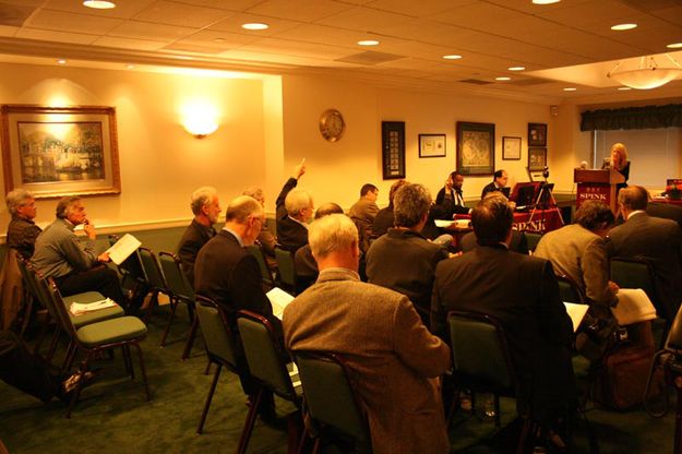 First day of the 3-day Risvold auction at the Spink Shreves gallery in New York January 27, 2010. Clint Gilchrist and Jim Hardee (far left) went representing Sublette County. |