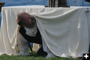 Orgon (Mark Adderley) goes undercover to investigate his wife's claims against Tartuffe. Photo by Tim Ruland, Pinedale Fine Arts Council.