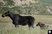 Photos by Paul Ellwood August 1, 2010 Paul Ellwood took this photo of a mother moose and her calf on the Dell Fork Ranch in Bondurant over the weekend. "This responsible mother can jump. These are the first moose we’ve seen on our ranch in several years. Photos taken with the new small mirrorless SLR. Panasonic GF 1 using a 45 -200 lens."