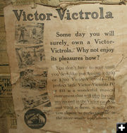 Someday you will surely own a Victor-Victrola... an ad from one of the papers on a kitchen wall.