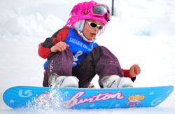 Kia Comstock, 10, skids to a stop after fiercely shredding the rails and jumps in the Terrain Park Competition at White Pine Ski Resort on March 19. Photo by Matt Naber, Sublette Examiner. |