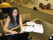 Heather Drick of Big Piney, a senior in communications with a minor in marketing, studies for finals examinations in the University of Wyoming Coe Library. UW is scheduled to accord degrees upon more than 1,660 students during commencement ceremonies Saturday,