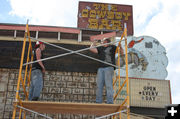 Workers with K Cross Construction in Pinedale first discovered the brand wall underneath the log siding.
