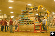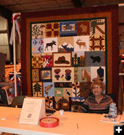 Ardelle Hill helped sell quilt raffle tickets at the Fiber Arts Guild booth in the commercial hall. The quilt was pieced together by the Fiber Arts Guild and other Sublette County residents. The machine quilting was done by Terry Quinn. All proceeds benefit Rendezvous Pointe.