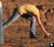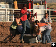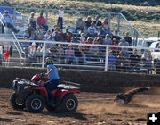 Getting ready for the shovel race. The rider has to lay on the shovel and hold on while the driver drags him from the 4-wheeler doing a barrel race pattern. Fastest time wins, as long as the rider keeps holding on!