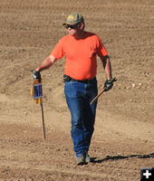 Big Piney-Marbleton Volunteer Fire Department Fire Chief, John Ball plants the NAPA flag in the arena. One of the objects was to be the first car to run over the flag.