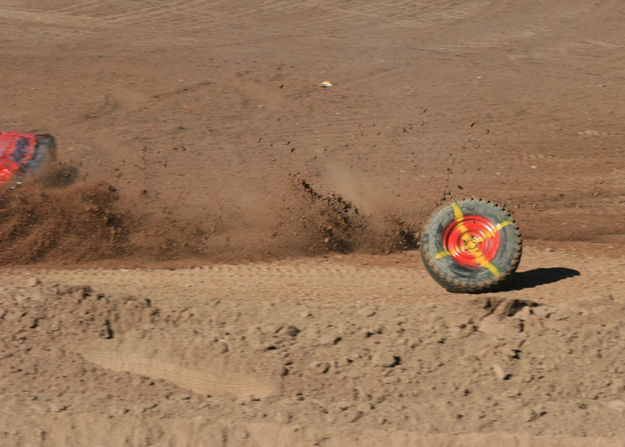 The #953 car, driven by Trevor Greenwald, loses its tire. |