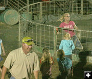 The Greased Pig and Pig Wrestling events were held on Sunday, July 24th at the Buss Fear Memorial Rodeo Arena. The event was sponsored by the Bank of Sublette County. Livestock contractor was Double D Livestock LLC out of Greybull, Wyoming. Announcer for the event was Gary Nash, Gary Nash Auction Service, out of Worland, Wyoming.