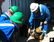 Everyone had to listen to the safety briefing, then sign the Safety sheet saying they have read, understand, and agree to abide by the requirements and responsibilities listed in the Jonah site specific safety and environmental briefing. The 25-point briefing covered accidents, injuries, fall protection, clothing, smoking, wildlife, horeseplay, tools, photographic devices, housekeeping, driving, firearms, explosives, weaponds, working in extreme temperatures and other operations. "You have the authority and responsibility to stop any unsafe operation."