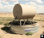 A stock watering tank serves a new purpose acting as a spill catch basin for tanks at well sites. Wire mesh is placed ver the top to keep birds and other animals from getting into the tank.