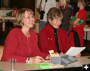 Millie Pape (L) and Angie Thomas (R) keep track of the bids. Both work at the Museum of the Mountain Man. Millie has been involved with the wreath auction since it started 18 years ago.
