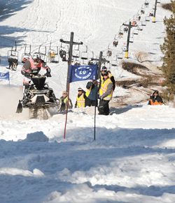 Scott Cheeney of Pinedale throttles up the steep course at the 37th annual World Championship Snowmobile Hill Climb. Thirteen racers from Sublette County competed in the event, including semi-pro ‘King of the Hill’ Blaine Mathews. Photo by Andrew Setterholm, Sublette Examiner. |