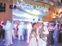 Pinedale High School Prom King Kyle Choate and Queen Kelli Nystrom open the dancing under bright lights and dazzle. The prom was held Saturday night at the Pinedale Aquatic Center and decorations went with the ‘Mystical Midnight’ theme. Photo by Andrew Setterholm, Sublette Examiner. |