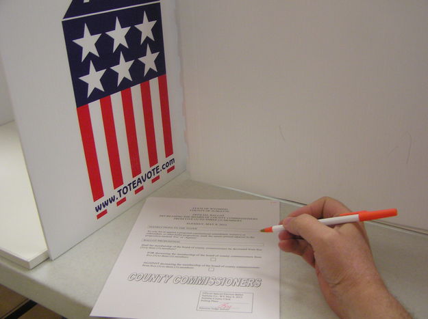 Special Election ballot on the question of how many commissioners should there be, 3 or 5? Photo by Bob Rule, KPIN 101.1 FM Radio. |
