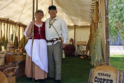 Pam and Darold Francis attend the 2012 Green River Rendezvous in Pinedale from Orem, Utah, bearing brooms and buckets, ready for the busy extended weekend of Rendezvous from their tent in Trader’s Row. Photo by Travis Pearson, Pinedale Roundup. |