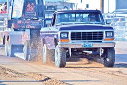 Randy Kirkwood, of Big Piney, put his old-school pickup to the test at the tractor pull at the Sublette County Fairgrounds last weekend. He was one of a handful of Sublette County amateur pullers to run the guts out of their vehicles before the professionals took over. Photo by Megan Neher, Pinedale Roundup. |