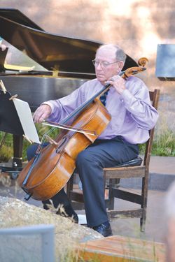 The music in the courtyard this past week featured classical tunes at the Sublette County Library. Along with Coralee Petersen on piano, Fred Petersen serenaded the crowd on the cello. Photo by Caitlin Tan, Sublette Examiner. |
