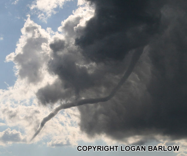 Closeup of funnel cloud north of Marbleton and Big Piney, Wyoming on Monday afternoon, Sept. 16th. Photo by Logan Barlow, copyright. |