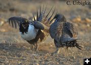 Greater Sage Grouse are currently on their leks (traditional breeding grounds), with the males dancing, displaying, and fighting for their hens.