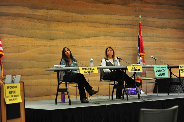 Write-in candidate Michelle Hosler (left) and incumbent Mary Lankford (right). Photo by Terry Allen. |