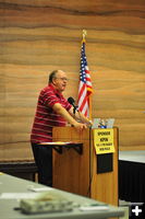 This candidate forum was sponsored by KPIN 101.1 FM Radio, Pinedale Online, the Pinedale Roundup, and Sublette Examiner. MC for the forum was Bob Rule, owner of KPIN 101.1 FM radio, which broadcast the forum live during the event. Question askers were Ned Donovan, representing the two newspapers and Debbie Vickrey representing KPIN Radio. Dawn Ballou with Pinedale Online monitored online question submissions during the forum and did set up and refreshments. Helpers included Duke Edwards and Michael Anderson as radio broadcast technicians, Clint Gilchrist doing question compiling, and Sarah Murdock as timer/sign signaler, and Meghan Neher/Pinedale Roundup/Sublette Examiner for event planning and advertising. Special thanks to the Pinedale Library for the use of the Lovatt Room and for stage set-up, and to Terry Allen for photography.