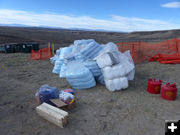 As of the time of this article, a little over two weeks after the incident, QEPFS is continuing to work on remediation of the site and surrounding area. Initial response was to stop and contain the leak. Remediation has involved removing contaminated soil where the leak flowed and installing containment and absorption features to filter future surface water runoff. The contaminated surface soil has been hauled away to a disposal facility in LaBarge. Many booms containing special absorbing material have been placed in a nearby draw to trap sediment and product that might flow through during a storm event. Three weep dams have also been installed further down in the draw to pond flow and recover any additional residue. These defensive measures are in place to protect wildlife and fish habitat by preventing residual surface contaminants from migrating into downstream waterways during run-off events. Samples of the soil and water have been sent away for testing.