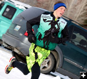 Over 176 registered turkey trotters woke up to a beautiful Pinedale morning Thanksgiving Day, November 27th. The temperature was 18 degrees with no wind to aid the walkers, bikers and runners in seeing the great Wind River Mountains on their yearly 3-mile adventure over the true "over the river and through the woods" course. However, the route was pretty icy on the corners this year. Just to prove how hardy these aerobic enthusiasts are, there were a lot of comments on how nice the weather was. Most places would be looking for alternate indoor venues for their Thanksgiving runs at this temperature. Just in case of some cold-blooded participants, Wyatt provided two metal tubs of firewood burning for those who needed to warmup a little before the race. He also recorded the times of all finishers so that his dad could run the race. Ellen Sheppard was in charge of the hospitality garage, making sure all finishers went to have their times recorded and photography. She also had plenty of warm coffee ready for the early birds.