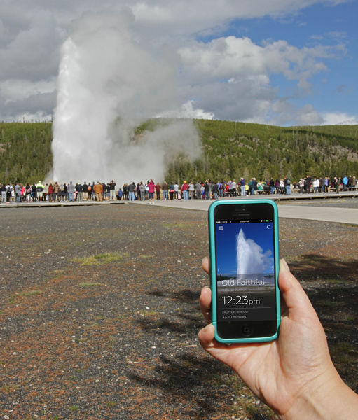 | Pinedale Online > News > December 2014 > Yellowstone geyser eruption free app available for smartphone and tablet > When will Old Faithful erupt? |