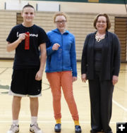(L to R): 2nd Place Maeve Poulson (Pinedale), 1st Place Alex Ramsey, District History Day Coordinator Ann Noble