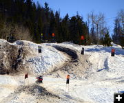 On Saturday, hard charging, Paul Bunyanesque-wild man, Aaron Sterck of Pinedale took an unexpected ride into the trees for a couple hundred feet, barely escaping serious and disabling contact with dozens of pine trees. But, while a few competitors took a wide turn once in a while, it was clear they were in charge of their machines, instead of the other way around. "It’s all mental," Aaron Sterck said. "Getting your head in the right place in the morning, having all your gear laid out, and having a good conversation with Cheyenne. "Cheyenne, is Cheyenne Thornton, Aaron’s Pit Crew Boss and girlfriend. "I watch the lines all the racers take, so I can tell Aaron what the fastest lines are," said Cheyenne. "I make sure his sleds are where he wants them to be, I keep everything he needs, on my person; water, snacks, racing googles and the running order." Aaron believes knowing which line to take up the mountain is critical to his success. "I need to know who is getting good lines," Aaron said, "That’s huge."
