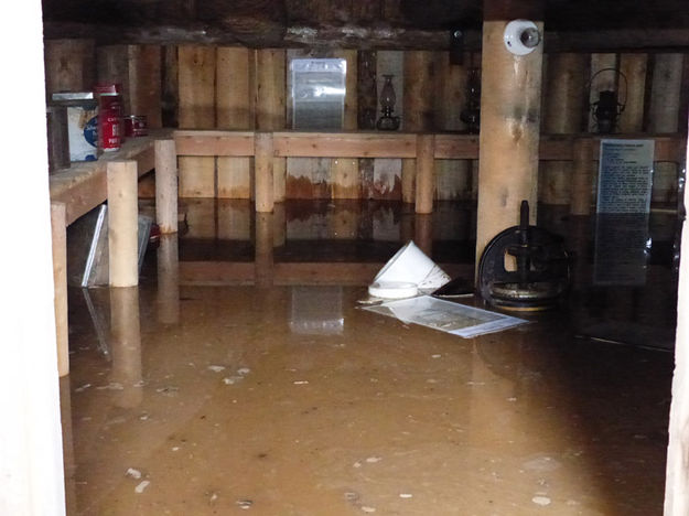| Pinedale Online > News > July 2015 > Flash flood event hits Sommers Homestead Living History Museum > Water 3-1/2 feet deep |