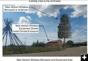 Several people spoke up in favor of the proposal. One person said she sees cell towers all around in her travels around the country and for the most part they blend into the surroundings and often people don’t even realize they have a cell tower tree near them. Another person applauded Verizon for working to provide better signal service to the Town and most tourists from bigger cities are very used to seeing these towers and won’t care, "We need the service." Another said, "I feel it (the tree) is attractive. Every building on this skyline including the museum is ‘ugly’." Another person pointed out that improved cell signal service for the area might actually save a life in town or for someone in the wilderness who might get into trouble and use a cell phone to call for help.