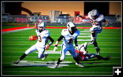 Unfortunately, it was after that exciting score that a series of errors befell Pinedale. A couple more interceptions that looked like the same play that resulted in the first interception; and then at least one fumble…pretty much dug too deep a hole for the team to climb out of. Pinedale still played with great heart and skill, but there wasn’t enough time left on the clock for them to gain a second wind.