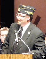 American Legion Post 47 and VFW Post 4801 and Auxiliaries hosted the Veterans Day observance in Pinedale on Tuesday, November 11th to honor veterans past and present. The Pinedale High School Band and Choir provided musical selections. The band was directed by Justin C. Smith and the Choir was directed by Gregory Allen. Preston Goulette, American Legion Commander, led the ceremony. Special guest speaker was Doug Uhrig, Past Department Commander. Boys and Girls State Representatives, Emmilee Eaton, Catlin Hetrick, Savannah Rutsch and Nathan Lee related their experiences. Randy Belton led the invocation and Benediction. Sam Staten and Shaun Andersen played "Taps". A public luncheon was served at the VFW Post 4801 following the program.