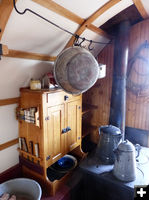 In early November, the Don Whitaker family donated their fully restored sheepwagon that came from the property they lived on west of Pinedale, which was historically the old Steele place. The wagon was in one of the sheds when the family bought the ranch. They shipped it to South Dakota to have it beautifully restored by Hansen Wheel & Wagon Shop, a professional wagon restoration company. The interior of this wagon has oak woodwork cabinetry, a working metal stove, and period-correct furnishings and living items. It is now on display in the Old Pinedale cabin area just south of the Museum of the Mountain Man.