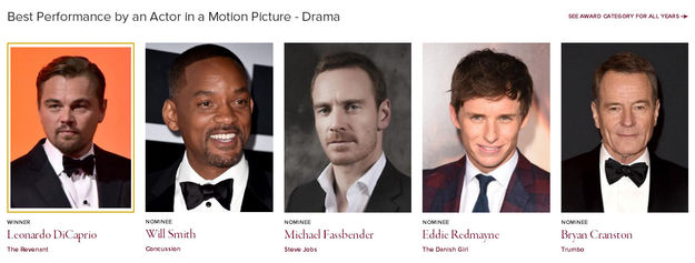 | Pinedale Online > News > January 2016 > ‘The Revenant’ takes Best Motion Picture at Golden Globes > Best Actor contenders |