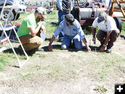 Members of the Upper Green River Basin Chapter of the Wyoming Archaeological Society help open up the site.