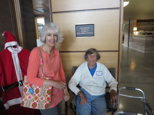 Molly Mackey Olson visits with Ellen Reed who was a Camp Fire Girl in 1935 and participated in the dedication of Wo-He-Lo Falls located above Middle Piney Lake. |