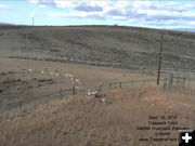 In the fall, most herds are moving south, but an occasional herd moves north across the overpass and terrain. Very few deer cross on the overpass. Of course, the timing of herds moving through is completely unpredictable, so keep checking back to catch a herd crossing. Watch carefully for a shimmy of white moving dots in the distance to see herds approaching.