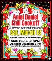 The Daniel Community Center is holding their 25th Annual Daniel Chili Cookoff on Saturday, March 18th at the historic Daniel Schoolhouse. The event is a fundraiser and includes a Silent Auction and Live Dessert Auction.