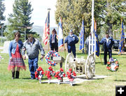 VFW 4801 Post Commander Jim Washum escorts Windy Noble to present the Veternas of Foreign Wars Wreath.