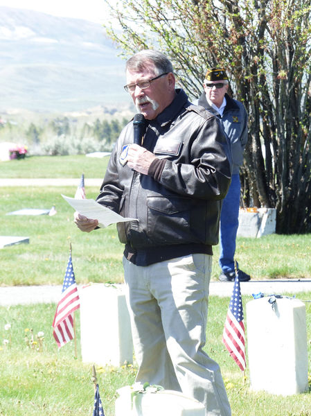 Retired brigadier general Tim Scott gave the Memorial Day talk at the Pinedale Cemetery. |