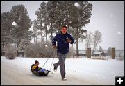 Amber Andersen always impresses me when I see her pushing her kids around town. The deep snowfall made her fitness and determination even more impressive.