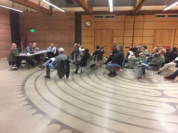 About 25 people attended the Special Meeting of the Sublette County Rural Health Care Board of Trustees to discuss the location for the new Critical Access Hospital. Photo by Bob Rule, KPIN 101.1 FM Radio. |