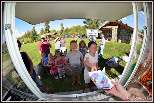 | Pinedale Online > News > July 2018 > 4th of July in Pinedale, Wyoming 2018 > Delany Gets a Donut from Tommy Upp's |