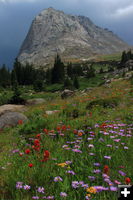 Fred Pflughoft and his wife Sue took a backpack trip into the Cirque of the Towers in early August. They originally planned to do the Cirque/Texas Pass/Shadow Lake loop, but later decided to go back out the "Climber’s Trail." The wildflowers were spectacular a