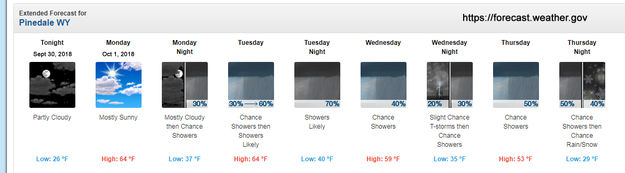 | Pinedale Online > News > September 2018 > Rain and snow showers in the forecast for the Upper Green > Weather forecast |