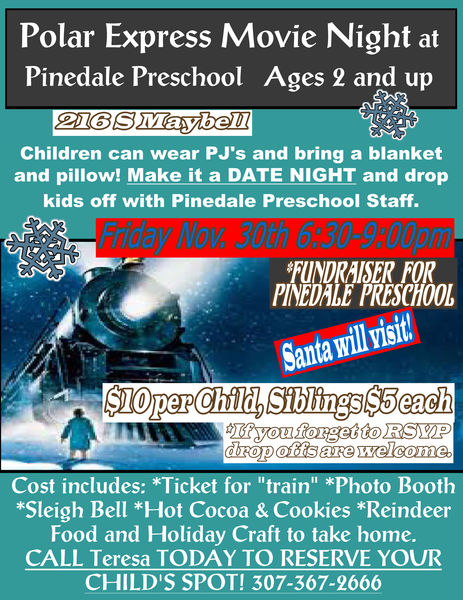 | Pinedale Online > News > November 2018 > Polar Express Movie Night Nov. 30 > Polar Express Movie Night |