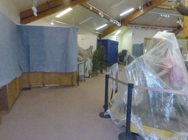 All of the displays inside the museum have had to be covered to protect them during the work on the overhead pipes and lights. |