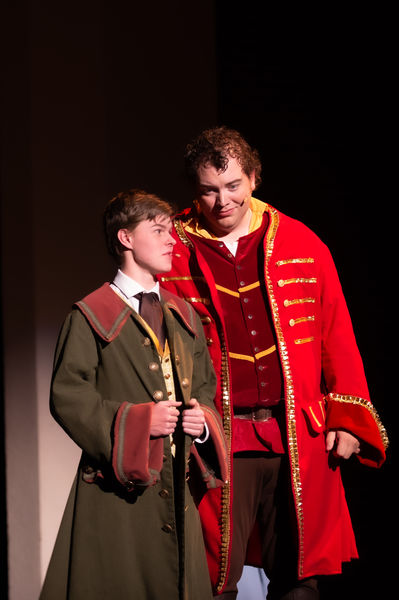 Gaston played by Justin Smith, and LaFou played by Landon Preece. Justin is a teacher at Pinedale High School and Landon is from Pinedale. Photo by Arnold Brokling. |